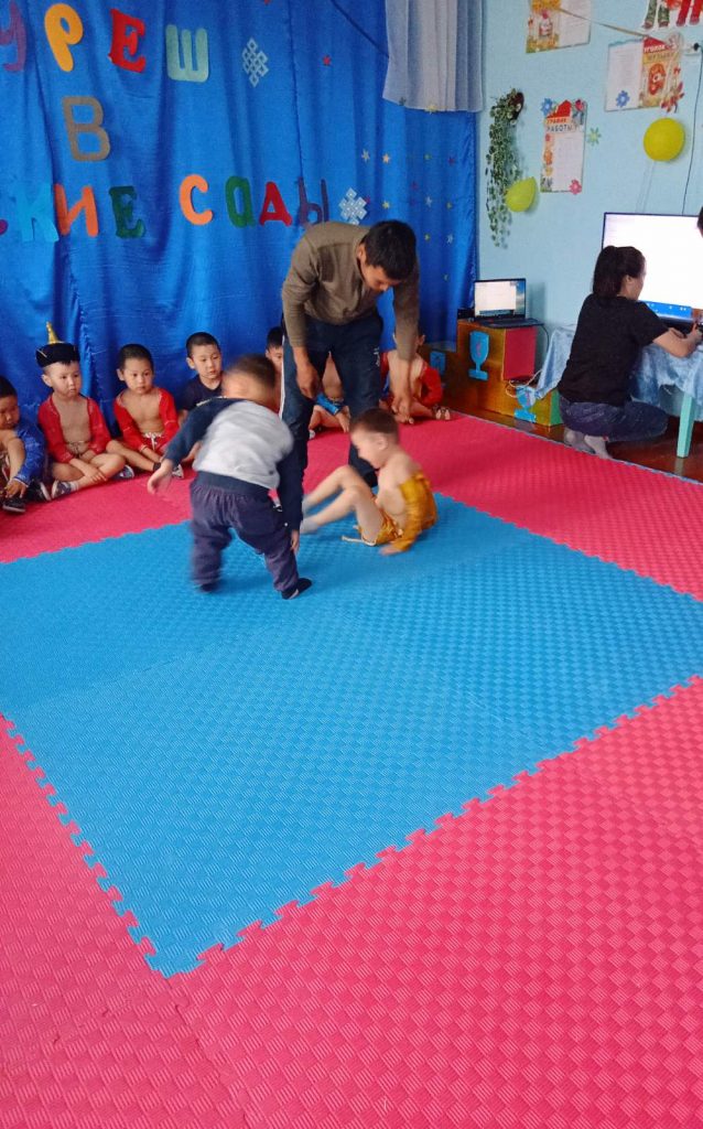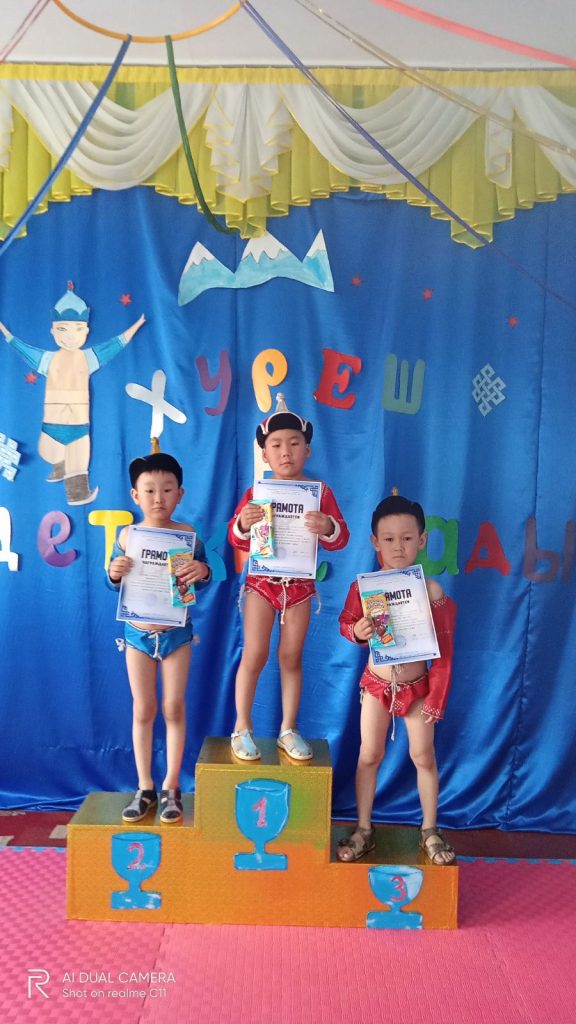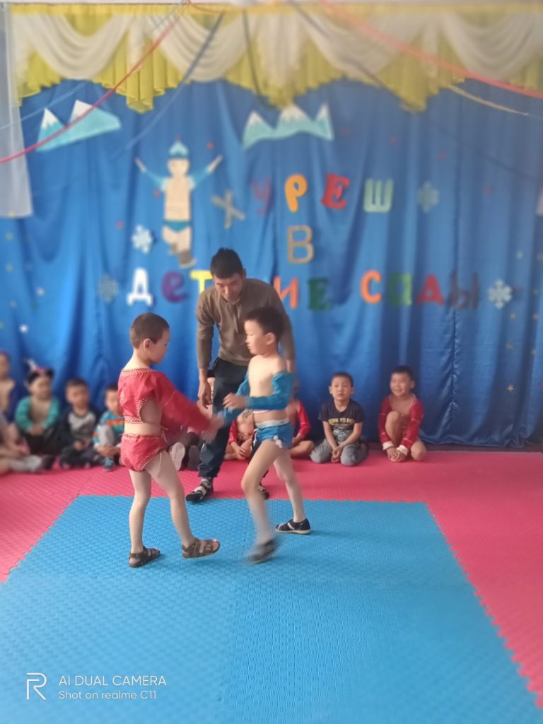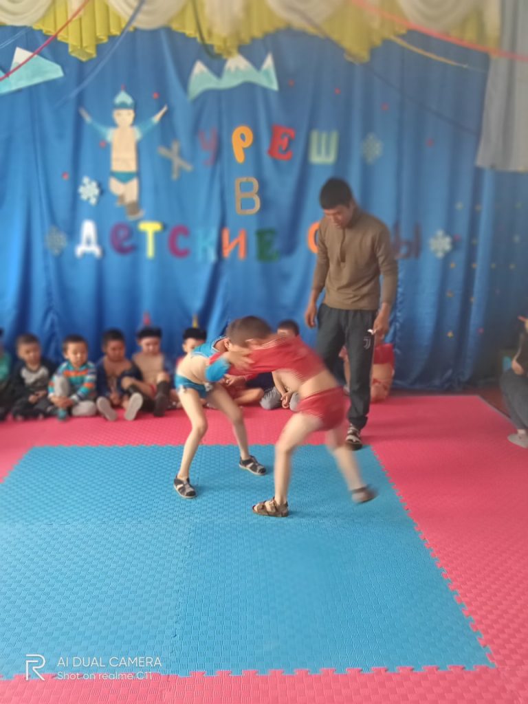 28 апреля 2022 года в 10.00 ч внутри детского сада проводилось соревнование по национальной борьбе Хуреш 2022 среди мальчиков.Всего участвовали 20 мальчиков. Участники конкурса все были одеты в форму содак шудак. Все участники хорошо подготовлены, исполнили танец орла «Девиг». В итоге соревнований Дамба Долаан занял 1 место, 2 место Лапчар Сагаан и 3 место Тондуп Темучин. Победители награждены грамотами и сладкими призами