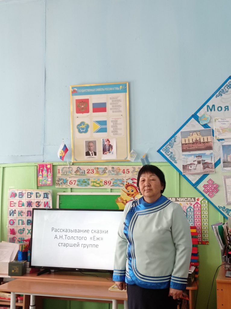 В качестве примера по проведению занятий — передавать накопленный опыт профессионального мастерства, обучать наиболее рациональным приемам и передовым методам работы, Урана Аннар-ооловна показала открытое занятие по образовательной области «Речевое развитие» развитие речи по теме: Рассказывание сказки А.Н. Толстого «Еж».