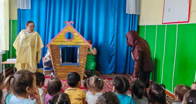 Участниками театрализованных представлений стали воспитанники старших и подготовительных групп, воспитатели и специалисты детского сада «Салгал», которые превращались в героев сказок, артистов, зрителей. Дети старшей и средней группы показали воспитанникам младших групп сказку «Теремок» на новый лад. Дети старшей исредней группы с удовольствием посмотрели кукольный сказки «Волк и семеро козлят и «Репку»», который подготовили для них педагоги детского сада.