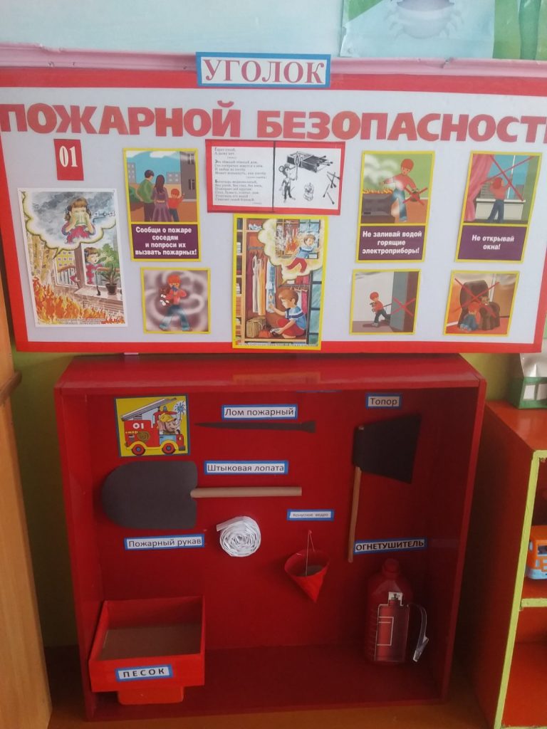 Целью создания уголка стало воспитание навыков у детей старшей группы адекватного поведения в пожарных ситуациях.